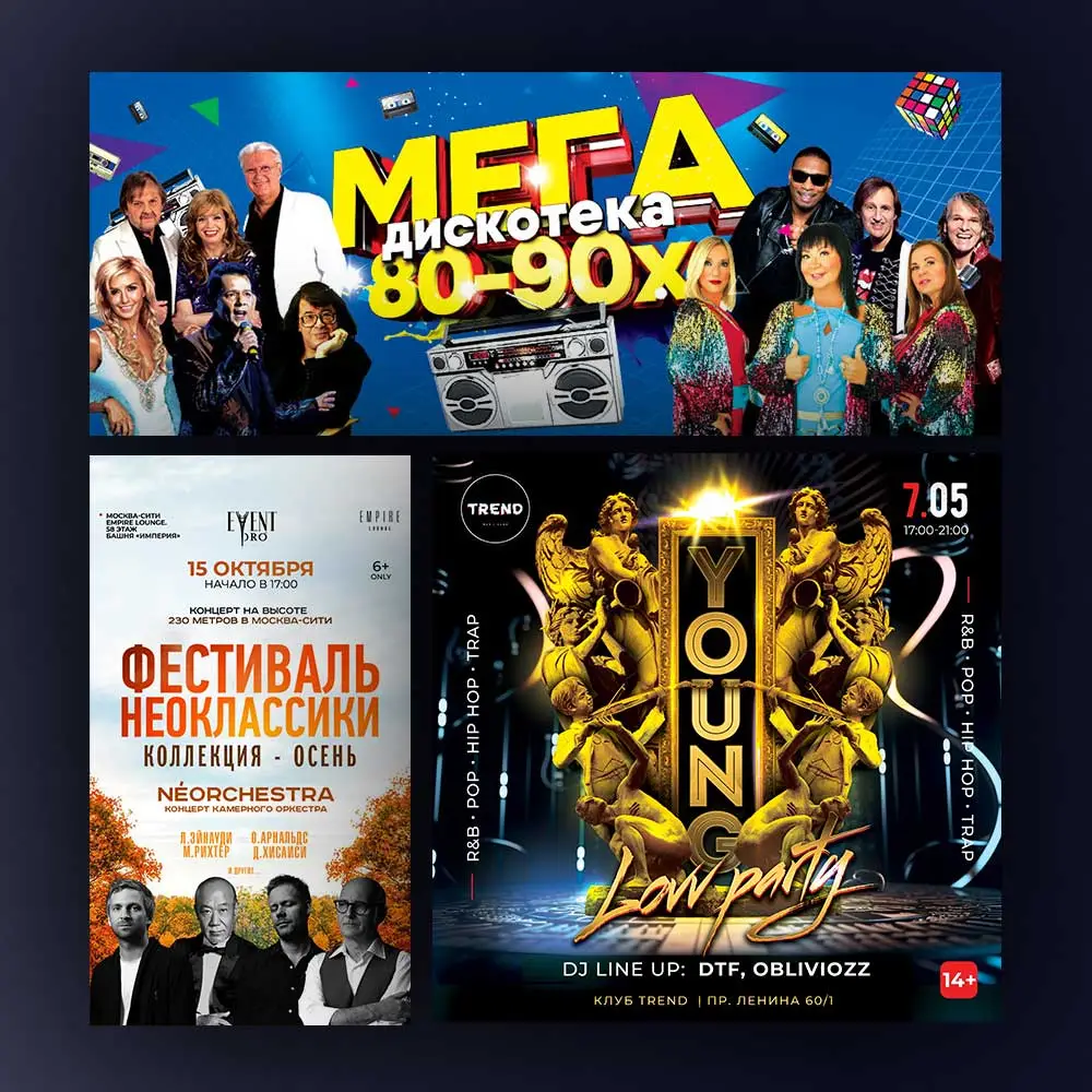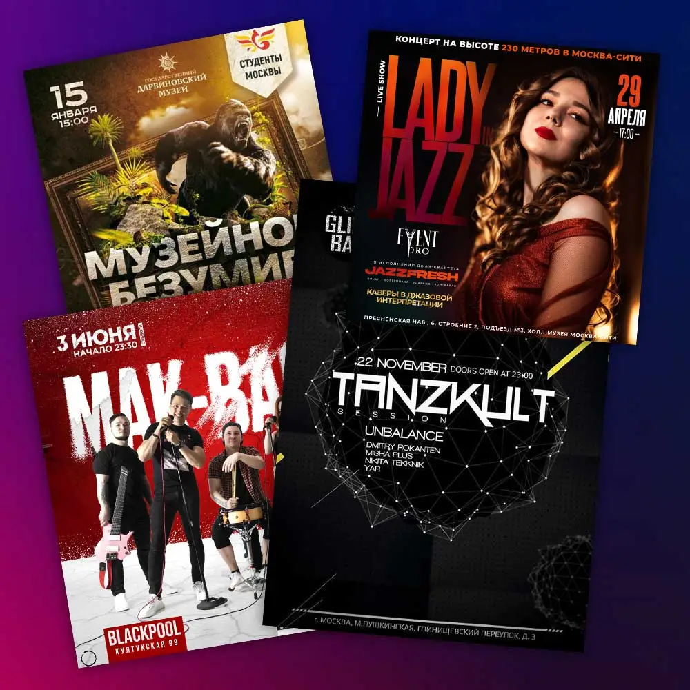 Афиша для концертов, спектаклей, клубных ивентов и рекламных кампаний