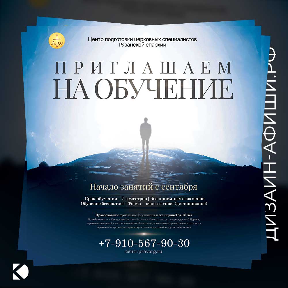 Разработать афишу для набора слушателей в Центр подготовки церковных специалистов Рязанской епархии